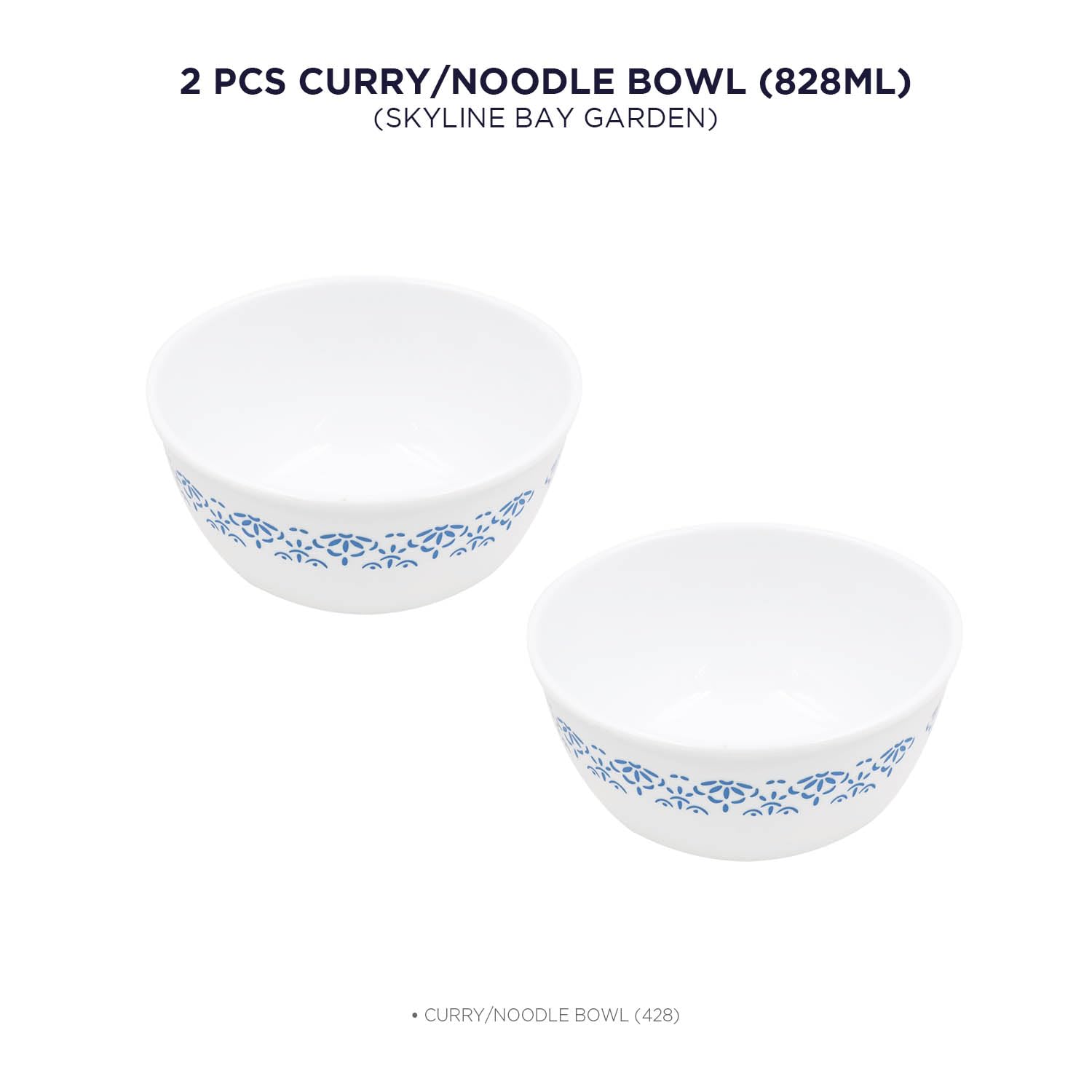 Corelle Skyline Bay Garden 828ml Curry / Noodle Bowl Pack Of 2 | Break & Chip Resistant | Lightweight & Durable | Microwave & Dishwasher Safe