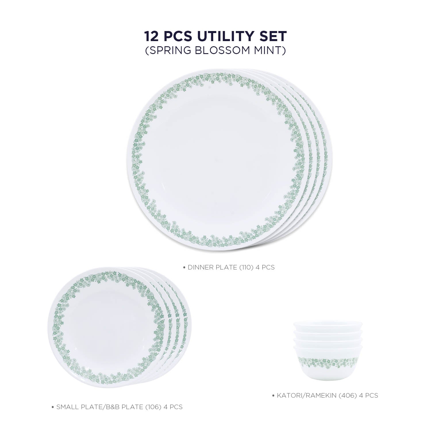 Corelle Livingware Round Spring Blossom Mint 12 Pcs Utility Set (K)