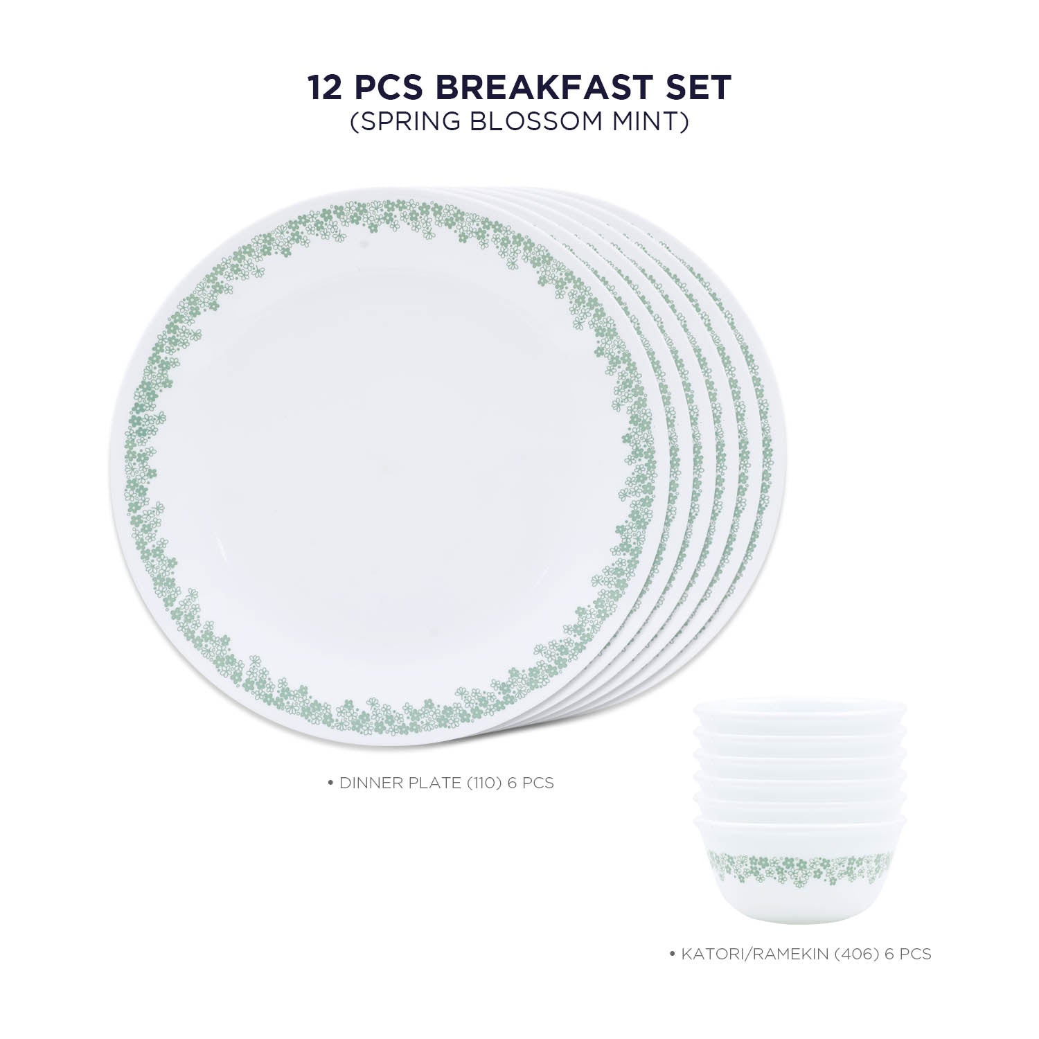 Corelle Livingware Round Spring Blossom Mint 12 Pcs Breakfast Set (K)