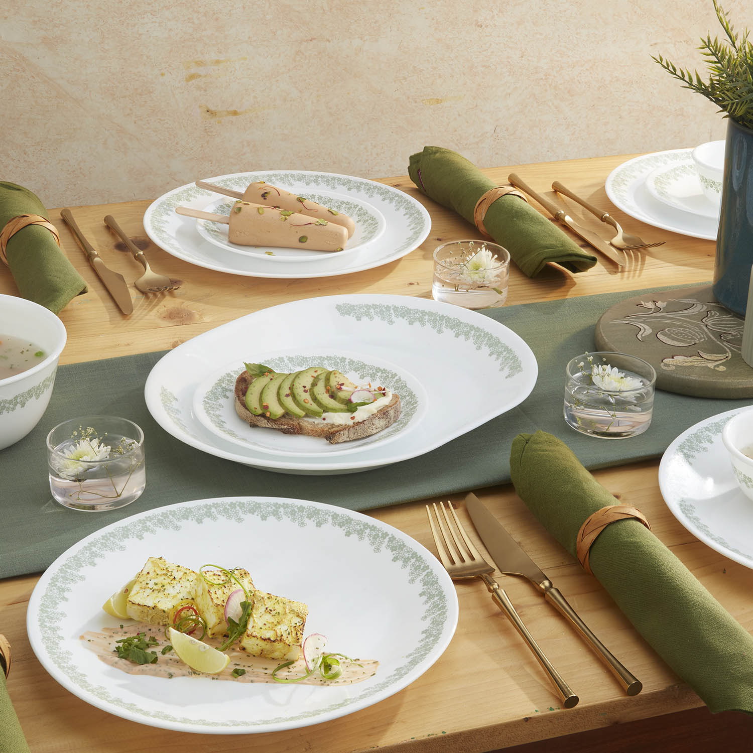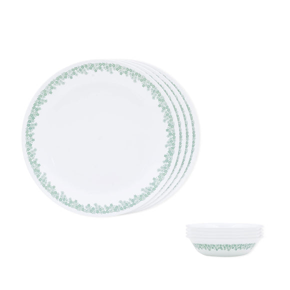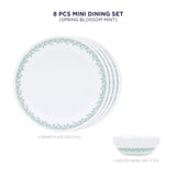 Corelle Spring Blossom Mint - 8 Pcs Mini Dining Set (VDB) | For Family of 4| Break & Chip Resistant | Lightweight & Durable | Microwave & Dishwasher Safe