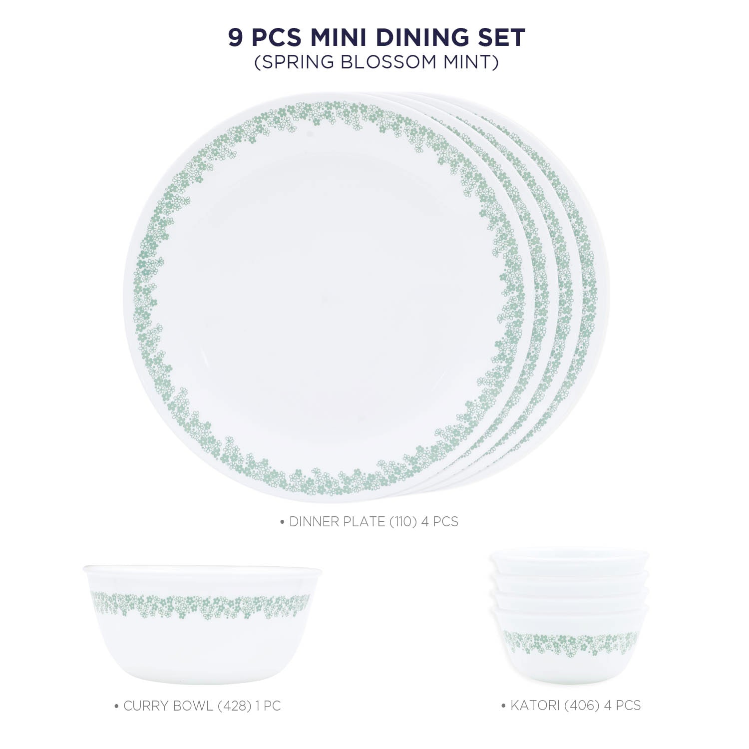 Corelle Livingware Round Spring Blossom Mint 9 Pcs Mini Dining Set
