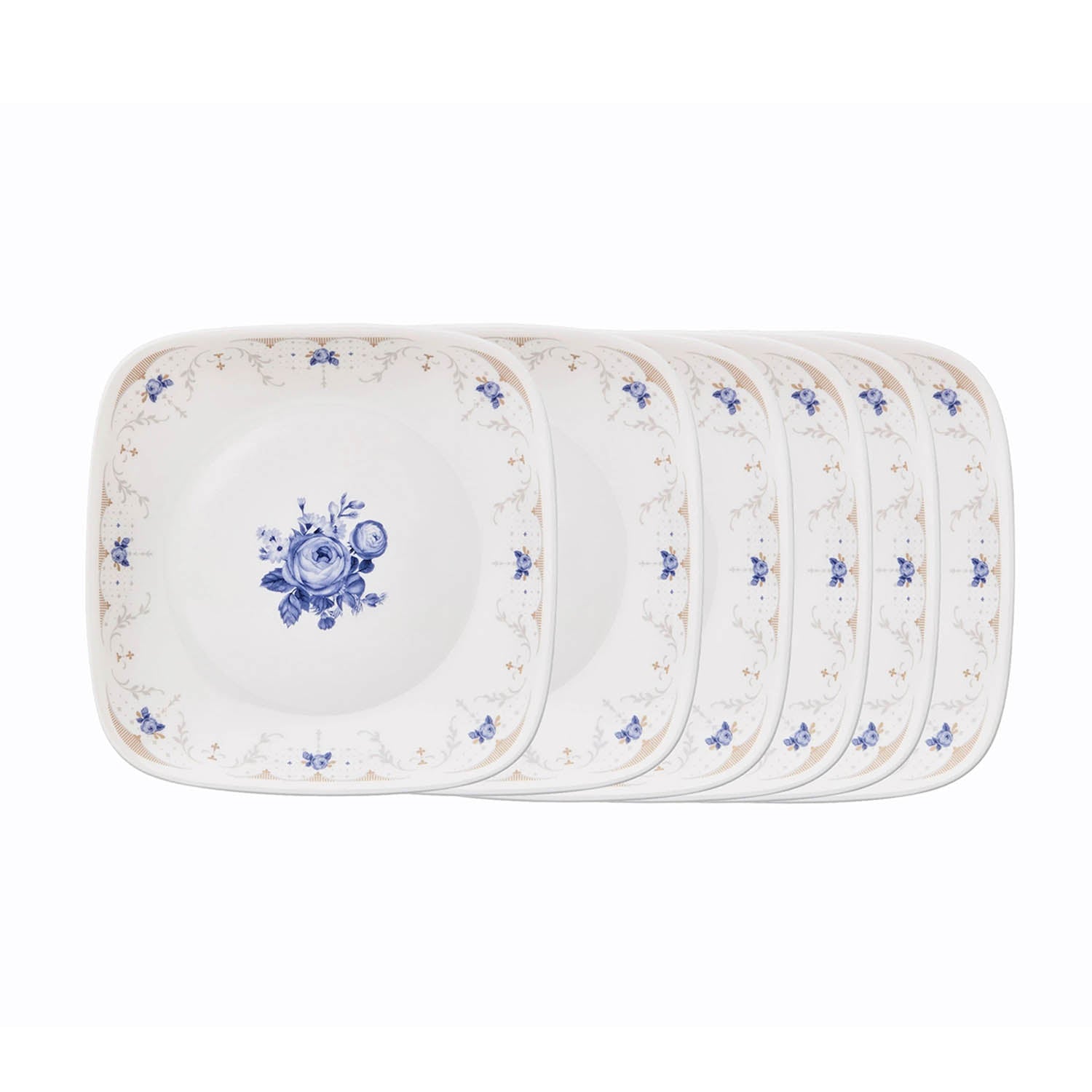 Corelle Square Round Gold Collection Blooming Blue 17 cm Square Round Small Plate Pack Of 6