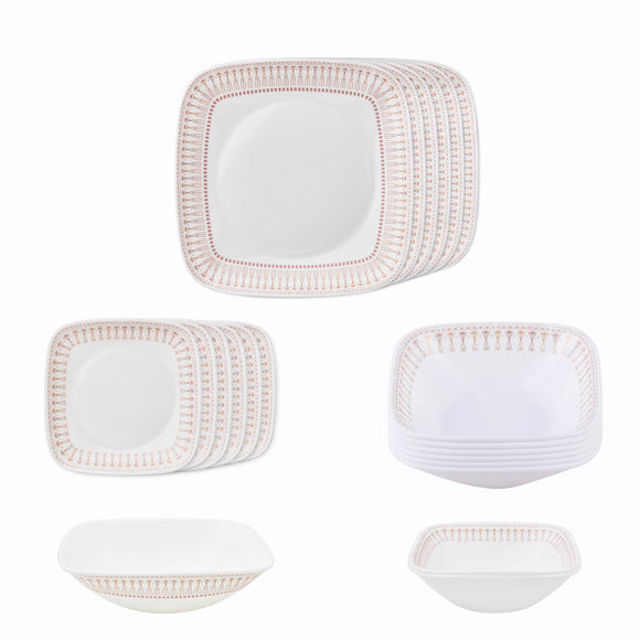 Corelle Gold Collection Golden Infinity Square Round 21 Pcs Dinner Set