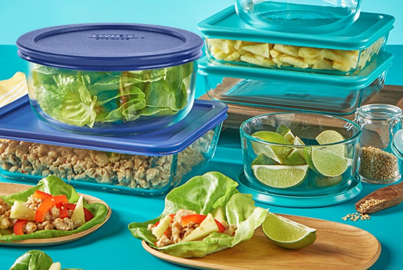 Pyrex-Plus 6Cup/1.42L Rectangular Glass Container with Red Plastic Lid